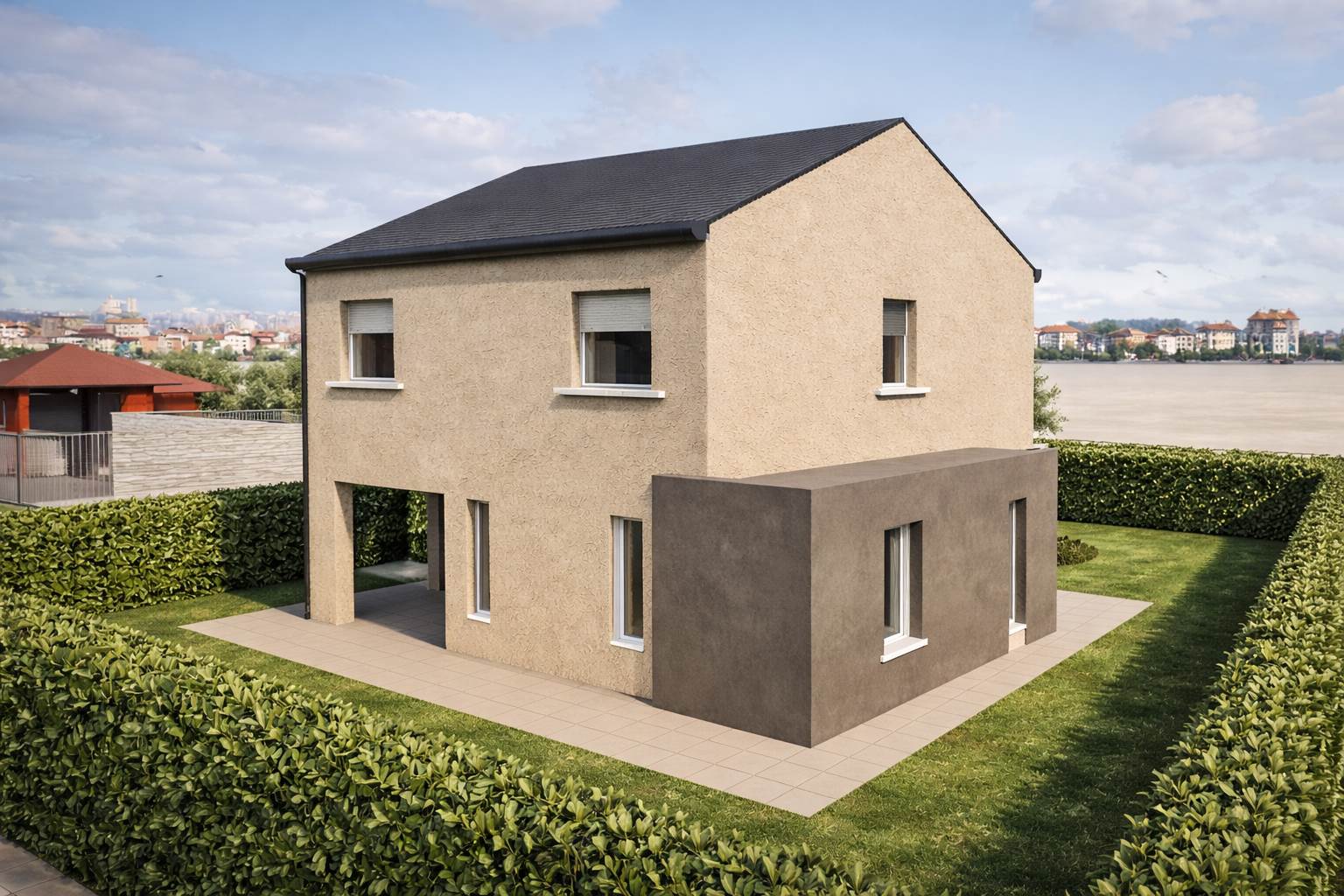 Turate, via Carlo Porta n. 22 - In un contesto tranquillo ma strategicamente posizionato, a pochi minuti dall’ingresso autostradale, nasce una villa moderna progettata per offrire il massimo del comfort abitativo, dell’efficienza energetica e della qualità della vita.